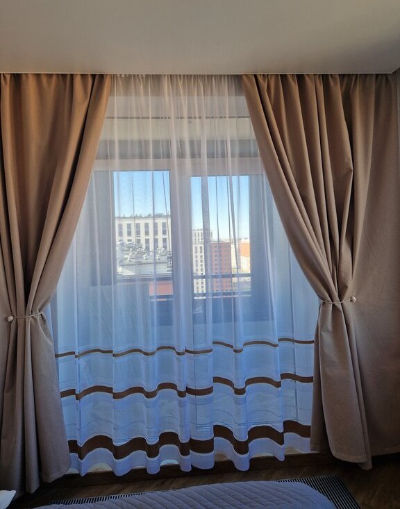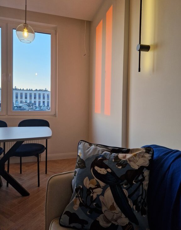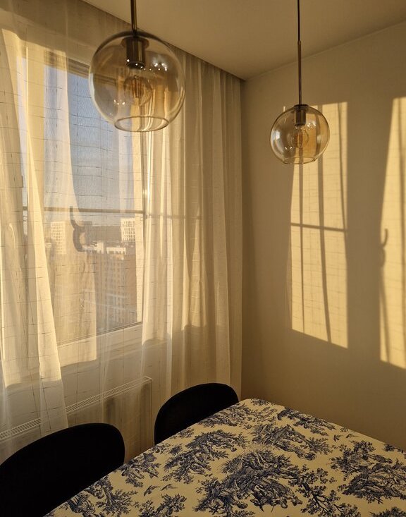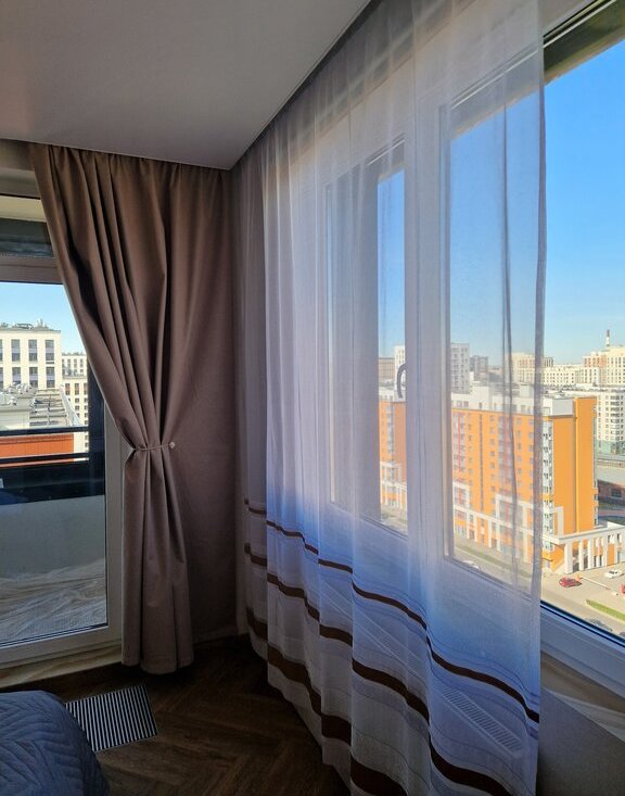 Квартира видовая с 2 окнами в спальне (но и блекаут шторы есть). Общая стена с соседями только в ванной - никто не будет вам мешать. На этаже всего 4 квартиры - все семейные и тихие люди.