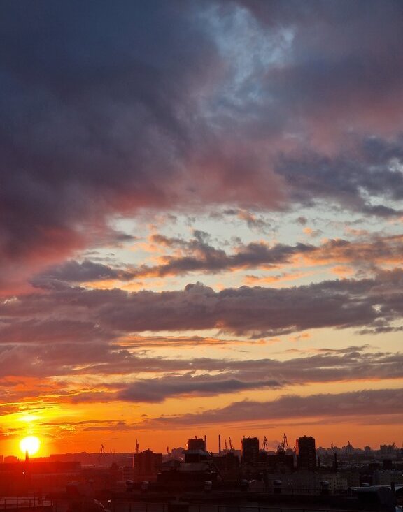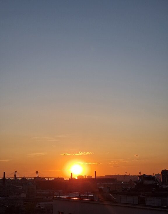 Вечером на кухне красивые закаты и вид на Лахту.