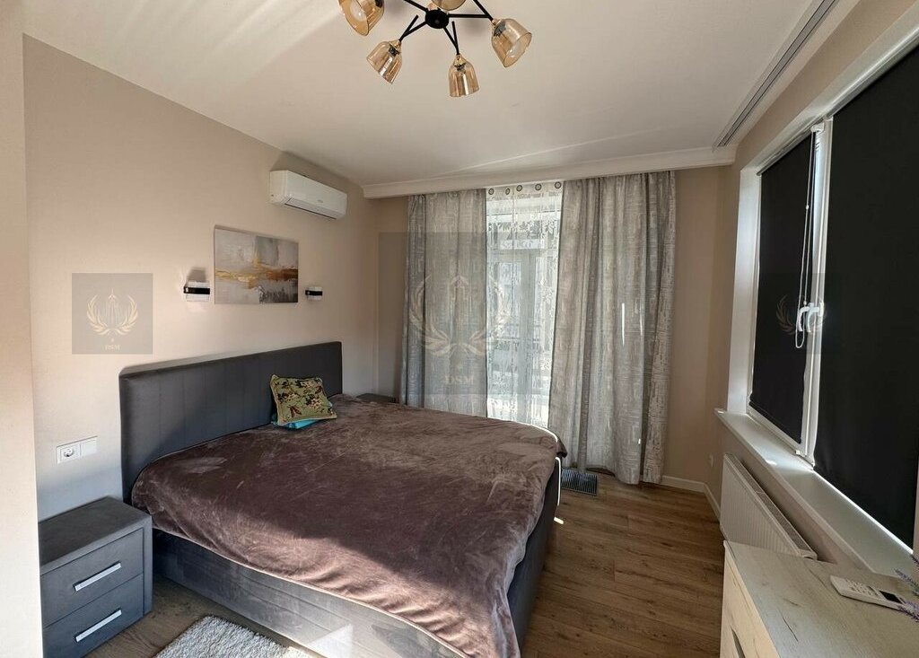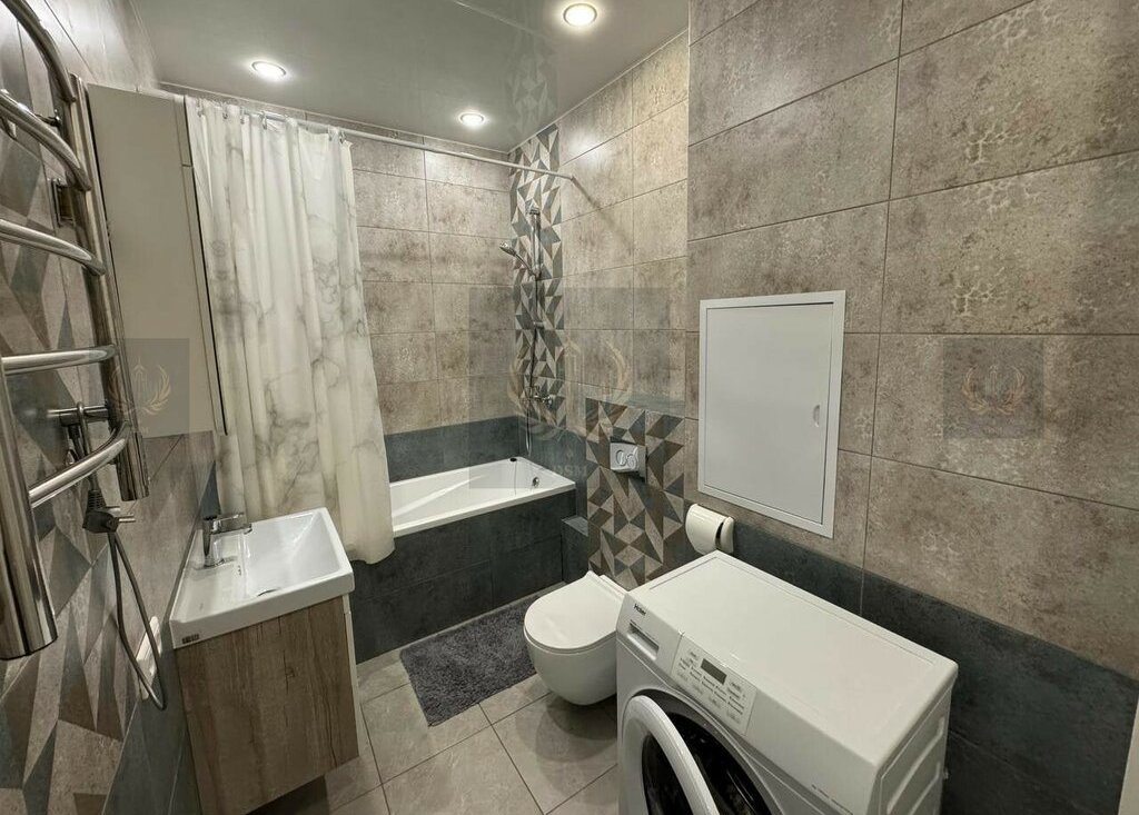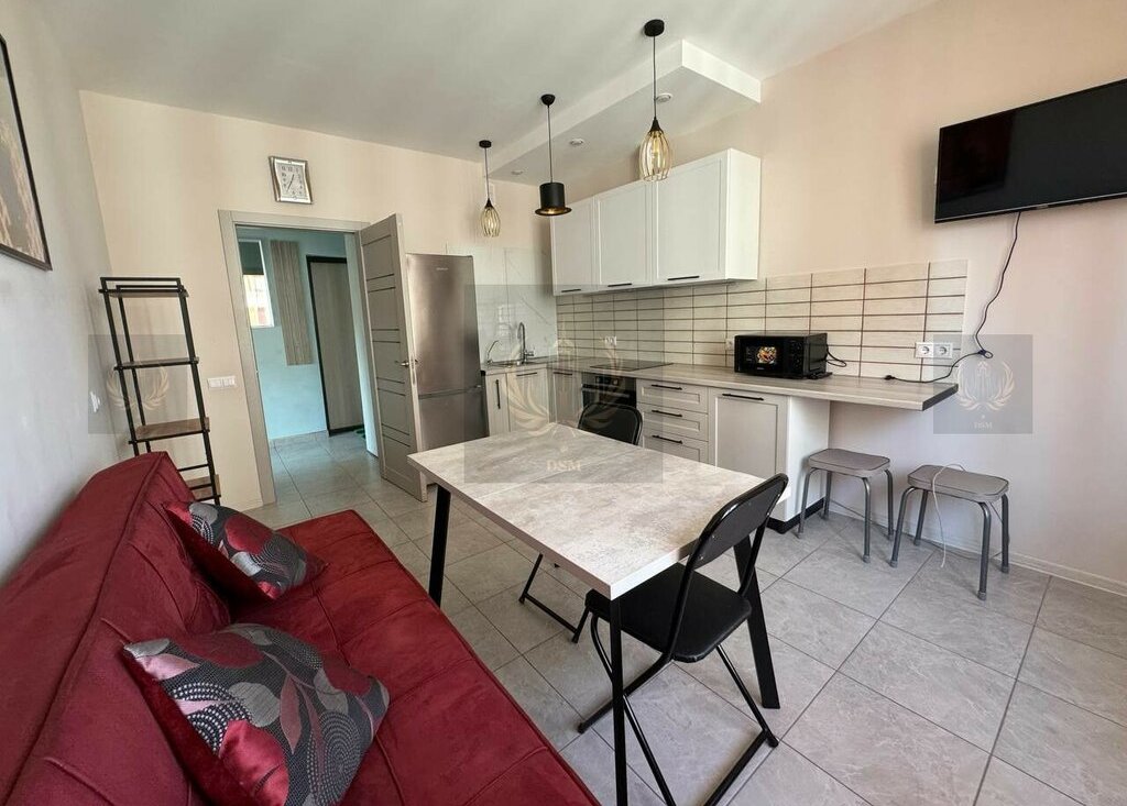 Внутри — полноценный комплект мебели и бытовой техники: комфортная кровать, вместительные шкафы, обеденная зона, диван, стиральная машина, холодильник, варочная панель, духовой шкаф, микроволновка, телевизор. Всё в отличном состоянии и тщательно подобрано для удобства арендаторов.