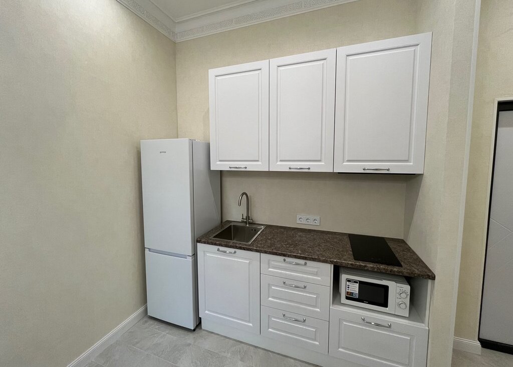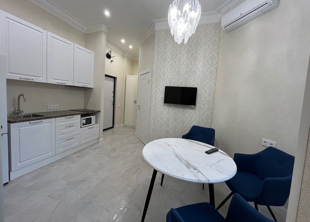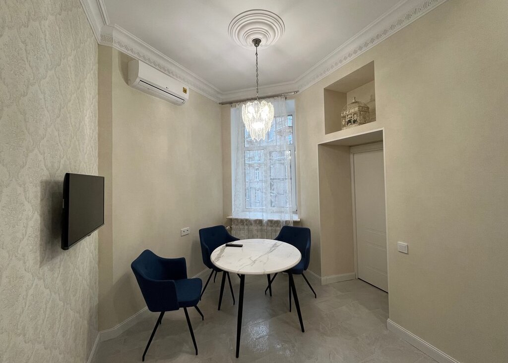 Сдаётся однокомнатная квартира в старом фонде только после ремонта. В квартире есть вся необходимая мебель. На кухне установлен фильтр для воды, варочная панель, вытяжка, микроволновая печь. Горячая вода от бойлера 100 литров. В комнате и кухне есть кондиционер. Квартира тёплая, светлая, окна на солнечную сторону, во двор. Двор днём закрыт на шлагбаум, если у вас есть машина, можно заказать брелок. Телевизора два, оба работают через приставку. Оформление по договору до 11 месяцев, паспорт гражданина РФ (не можем регистрировать иностранцев).