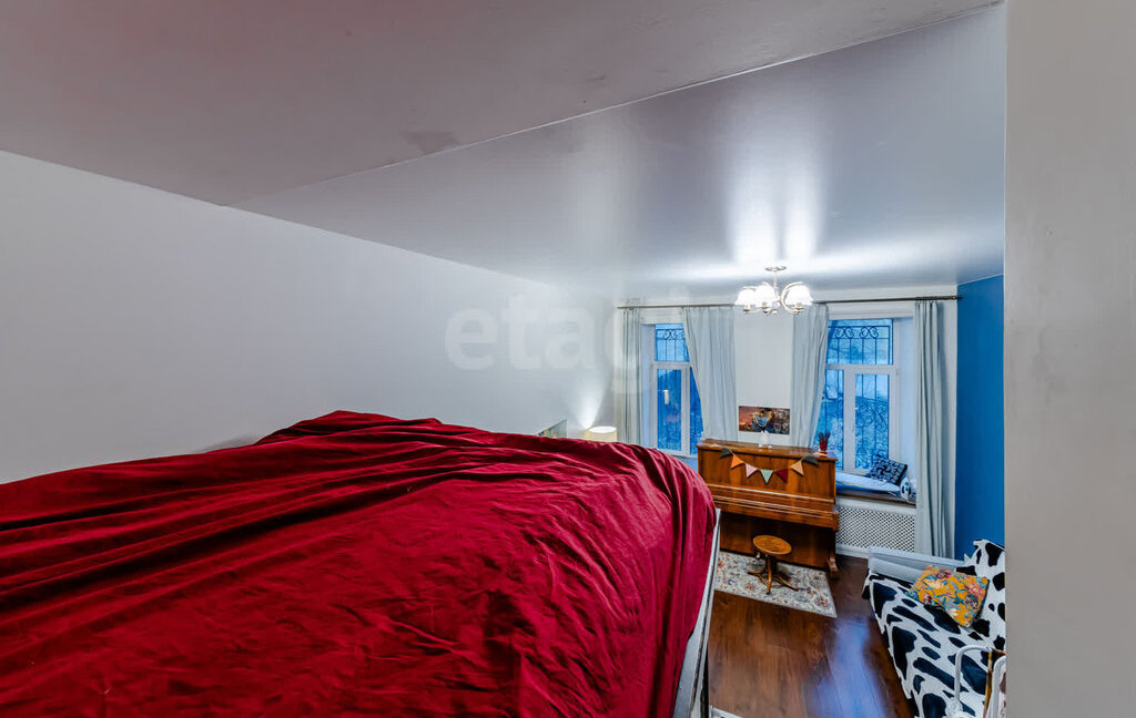 Большая комната со вторым ярусом. Двуспальный диван,дизайнерский комод,пианино,предметы интерьера,столик прикроватный,качественный матрас ИКЕА и другое.
