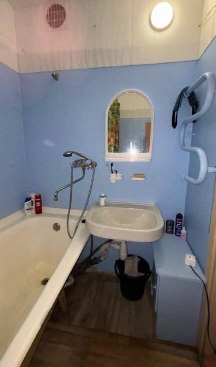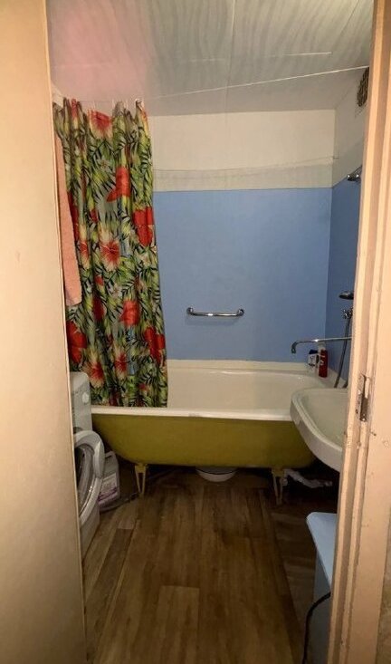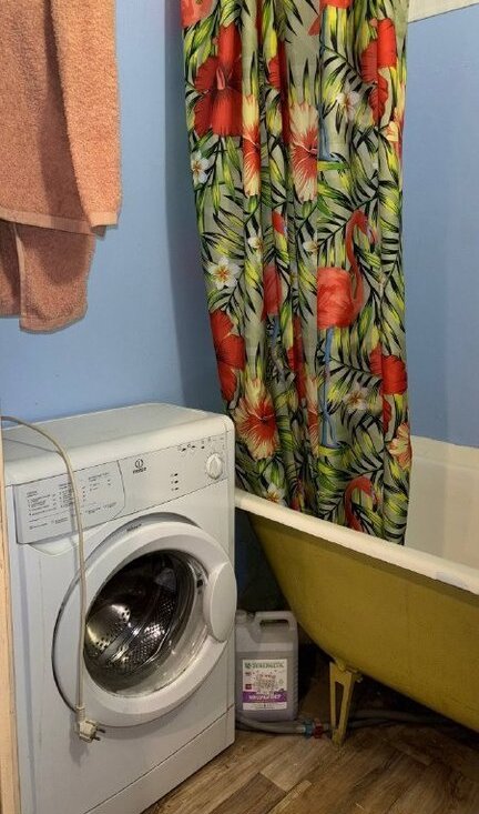 Санузел раздельный, оборудован ванной и стиральной машиной.