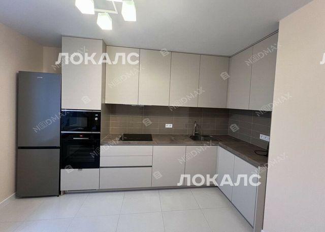 Кухня также оснащена всем необходимым: встроенная техника (Bosch), холодильник, плита и микроволновая печь.