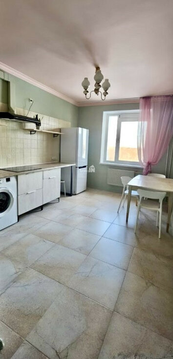 - Просторная кухня с плитой, вытяжкой, холодильником, обеденным столом и стиральной машиной;
