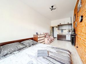 Кухня оборудована всем необходимым для проживания. Комната с полноценной двуспальной кроватью 160*200. Шкаф для хранения одежды.