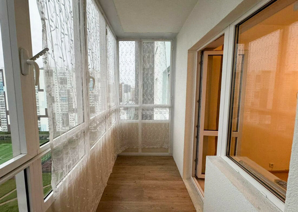В квартире имеется светлая застекленная лоджия, на которой есть место для отдыха: Окна выходят на восточную сторону (внутренний двор). На территории жилого комплекса имеются гостевые парковки, Благоустроенная придомовая территория, чистый, уютный двор.