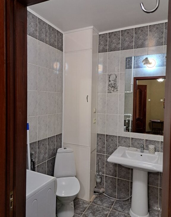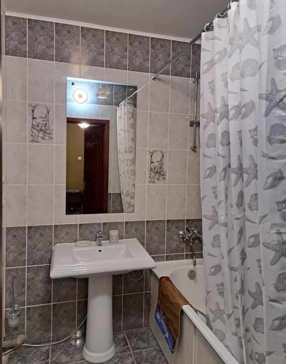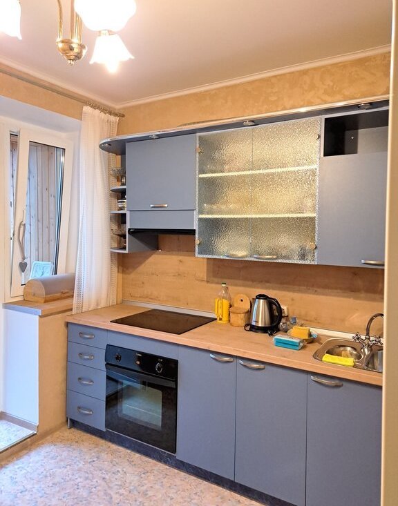 Кухня оборудована мебелью и техникой: варочная панель, духовка, вытяжка, холодильник. Стиральная машина в ванной. Есть бойлер, на случай отключения горячей воды летом.