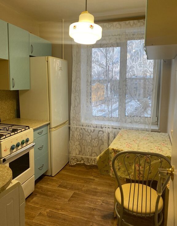 В квартире сделан косметический ремонт, она полностью готова к проживанию. В просторной светлой комнате есть необходимая мебель и место для размещения ваших вещей. Кухня оборудована холодильником и стиральной машиной, поэтому готовить и заниматься бытовыми делами будет удобно. Балкон и окна выходят в тихий и очень зеленый летом двор.