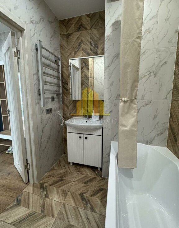 Совмещённый санузел с ванной, большая лоджия, гардеробная.