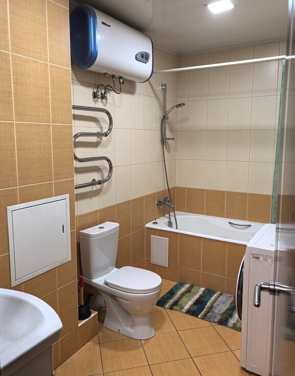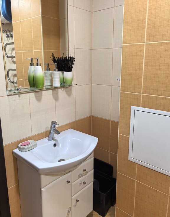 • Полноразмерная ванна, раковина с зеркалом и шкафчиком