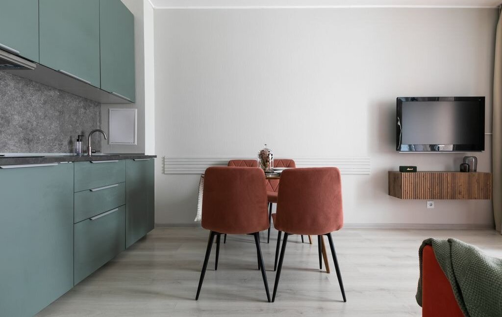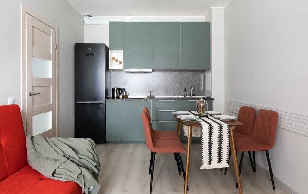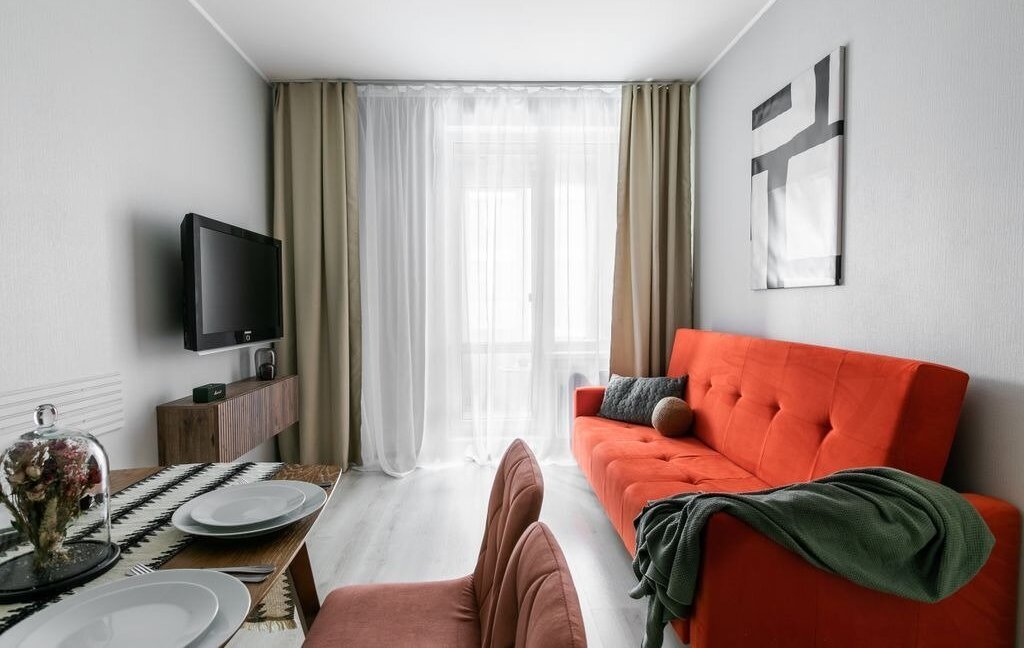 Квартира имеет полноценную спальню + кухню-гостиную, в которой расположен раскладной диван, а также балкон.