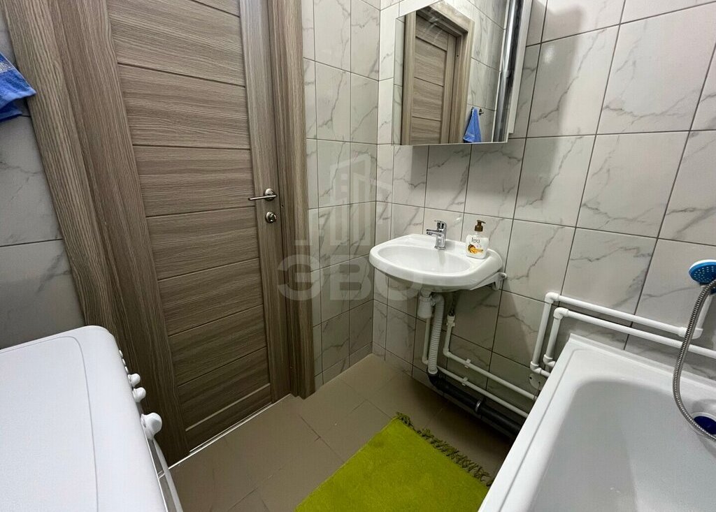 Меблированная прихожая, удобная двуспальная кровать, вместительный шкаф, стиральная машина, утюг. Все новое.