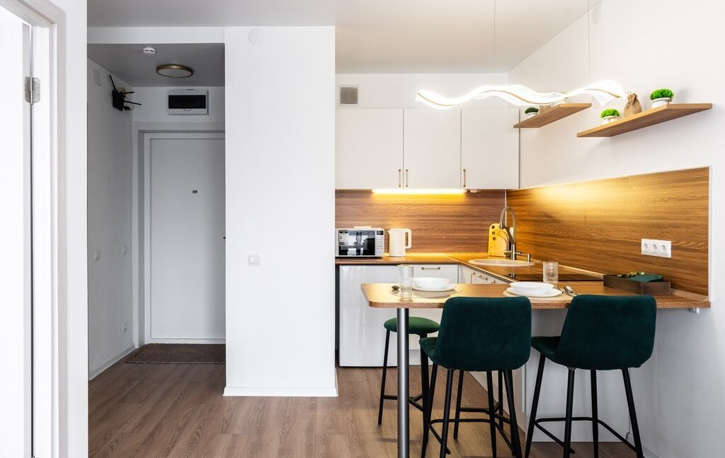 ✅ Всё необходимое для комфортного быта: Варочная панель, Чайник, Фен, Утюг и гладильная доска, Телевизор, фильтр для воды.