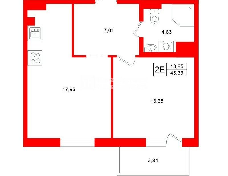 1-комнатная квартира: Санкт-Петербург, Кременчугская улица, 19к3 (42.5 м²)