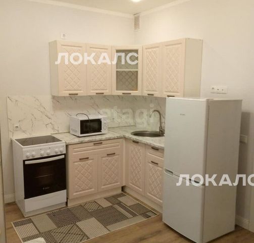 Техника: Вся необходимая бытовая техника — плита с духовкой, двухкамерный холодильник, стиральная машина-автомат, микроволновая печь.