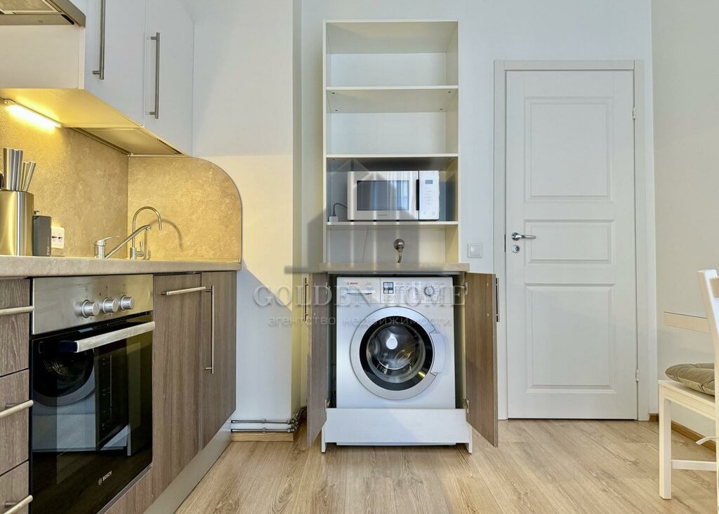 Полностью меблирована и технически оснащена. Кровать 200 на 160, посудомоечная машина, стиральная машина, микроволновая печь, новый ТВ.