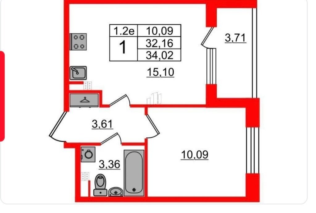 1-комнатная квартира: Санкт-Петербург, Московский район, муниципальный округ Пулковский Меридиан (32.16 м²)