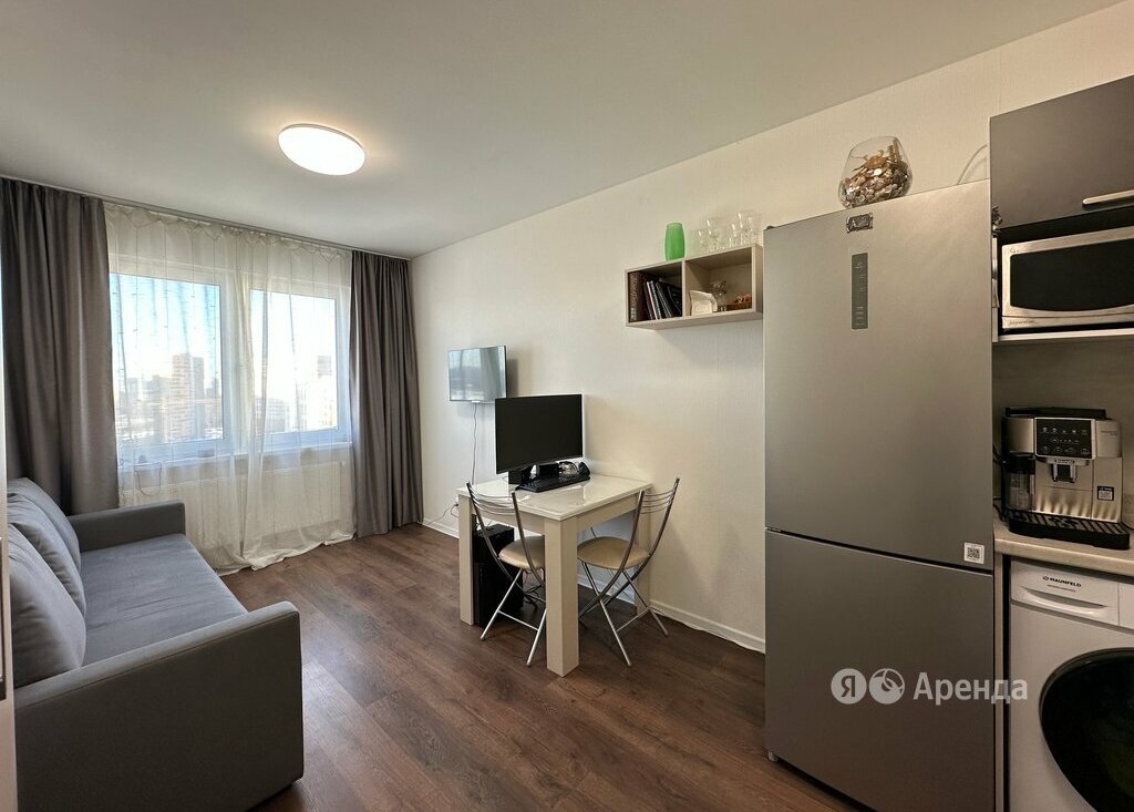 Сдаётся 1-комнатная квартира площадью 29 кв.м. с евроремонтом на 16 этаже в 16-этажном доме на срок от 11 месяцев. Из техники есть: