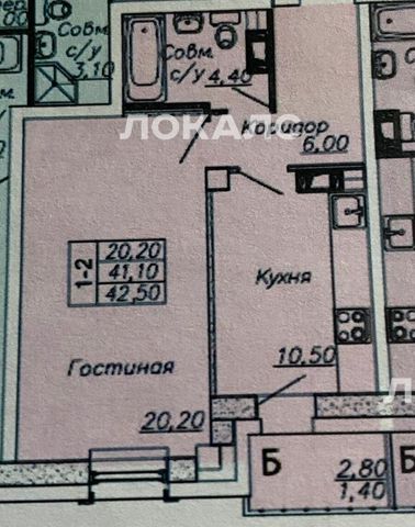 1-комнатная квартира: Санкт-Петербург, набережная Адмирала Лазарева, 14 (46 м²)