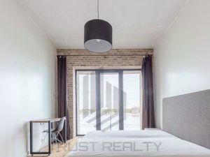 В квартире вас ждёт уютная жилая комната площадью 18 кв. м и просторная кухня на 22 кв. м, которая оснащена всем необходимым: кухонным гарнитуром, большим холодильником, посудомойкой и стиральной машиной. Для вашего комфорта предусмотрены большие панорамные окна от компании Reynaers Aluminium, из которых открывается живописный вид на реку Малая Нева и Финский залив. К тому же, есть возможность установить телевизор по договорённости, а также подключить интернет через Wi-Fi.