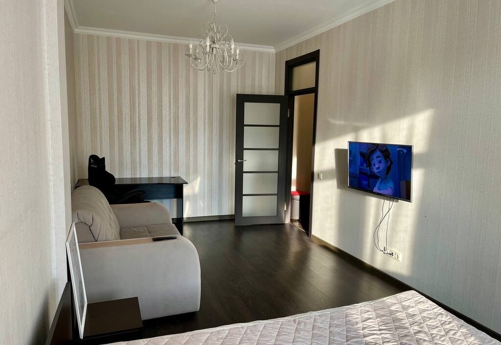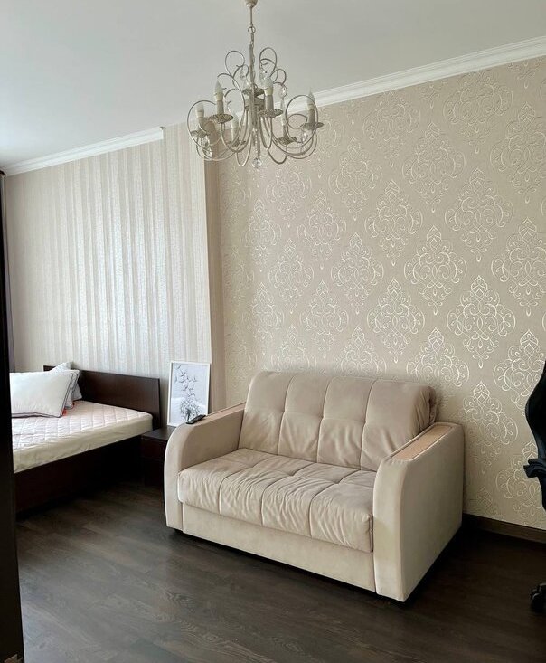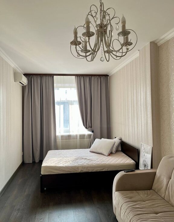 В квартире есть все необходимое, современная мебель и вся техника. кухонный гарнитур из натурального дерева со встроенной техникой, обеденный стол и стулья. Кровать 160 на 200, небольшой раскладной диван, комод, большой шкаф. Техника: холодильник, варочная поверхность, вытяжка, духовой шкаф, телевизор, стиральная машина и кондиционер. Комплекс охраняемый, огороженный, парковка подземная и внутри комплекса.