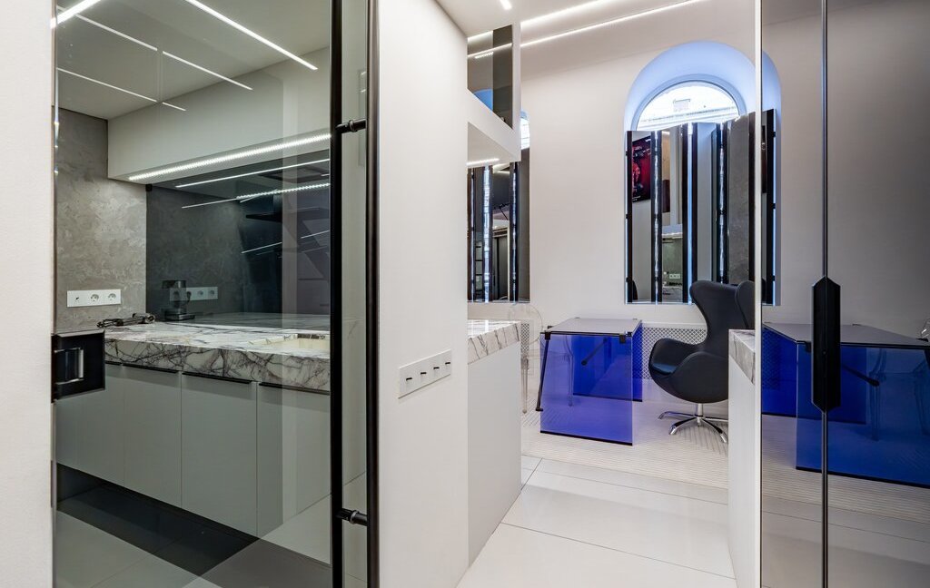 Освещение по всей квартире создает уютную атмосферу, делая вечера особенно приятными.