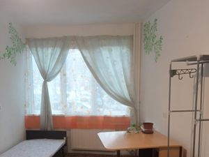 В квартире выполнен свежий ремонт, имеется необходимая для комфортной жизни новая мебель и бытовая техника. Раздельный с/у, просторный балкон, оборудованная кухня, комната с двумя диванами.