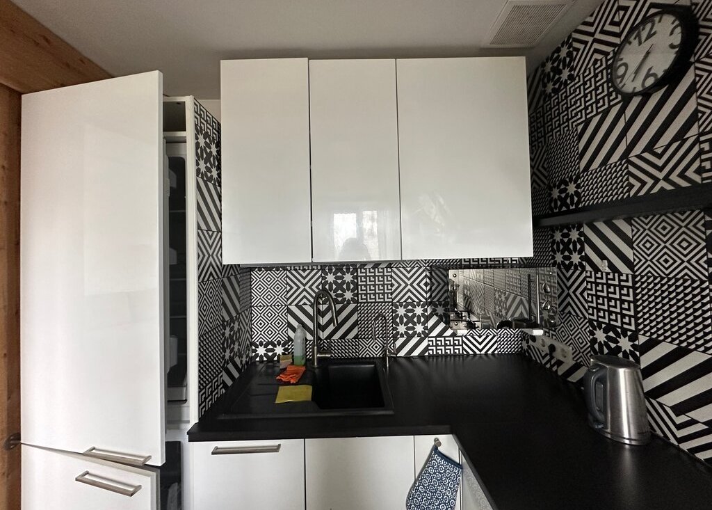 Сдается в аренду однокомнатная квартира на длительный срок, желательно семейной паре. В квартире есть все необходимое: встроенный холодильник, микроволновка, чайник, варочная панель (газ), духовка (электрическая), посудомойка, стиральная машина, роутер. На кухне установлен кран и фильтр для питьевой воды. В ванной кран с термостатом. Диван на кухне раскладывается. Черная стена - грифельная, можно писать мелом. Квартира светлая, чистая и уютная с очень красивым видом из окон. Рядом с домом Пятерочка, булочная Вольчека, Ермолино, в соседнем доме вкусная шаверма.