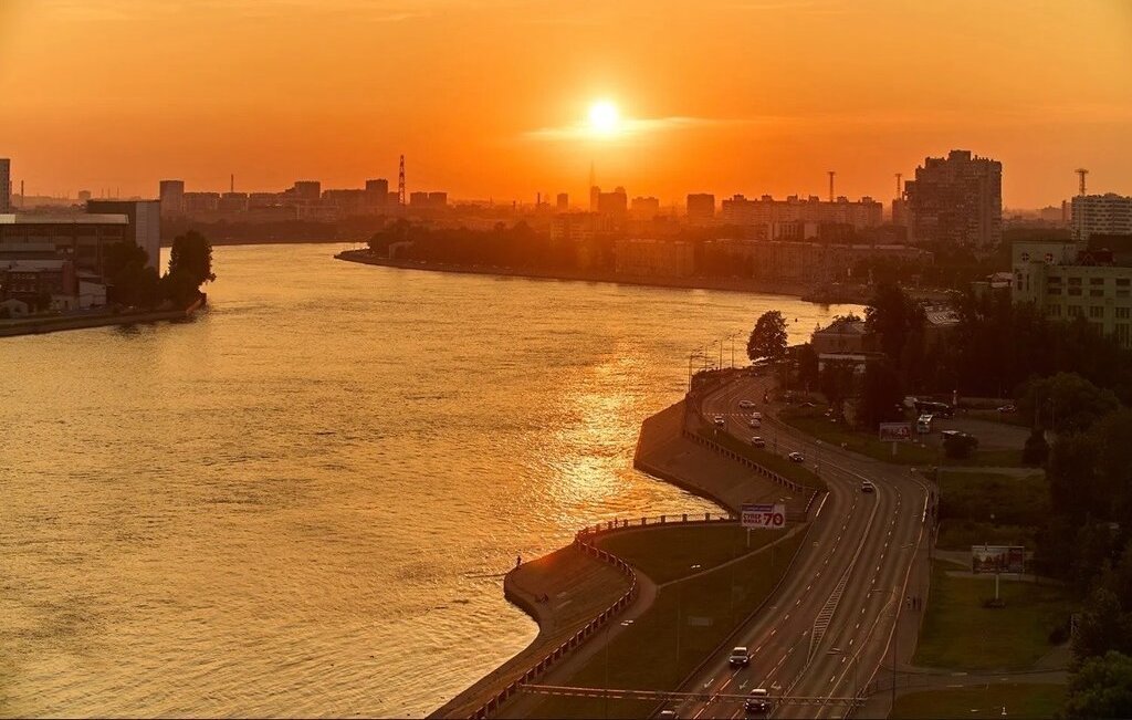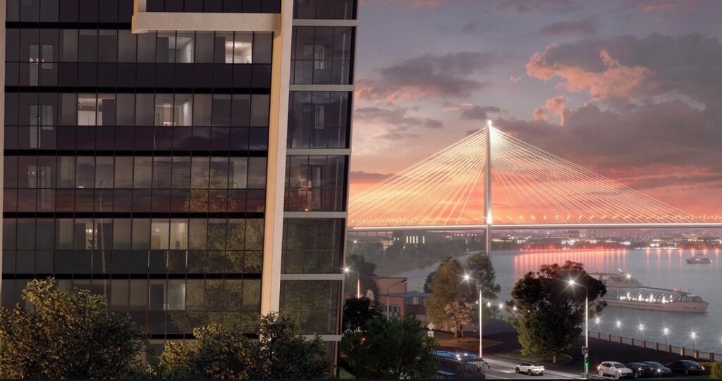 Панорамный вид на Неву и вантовый мост.