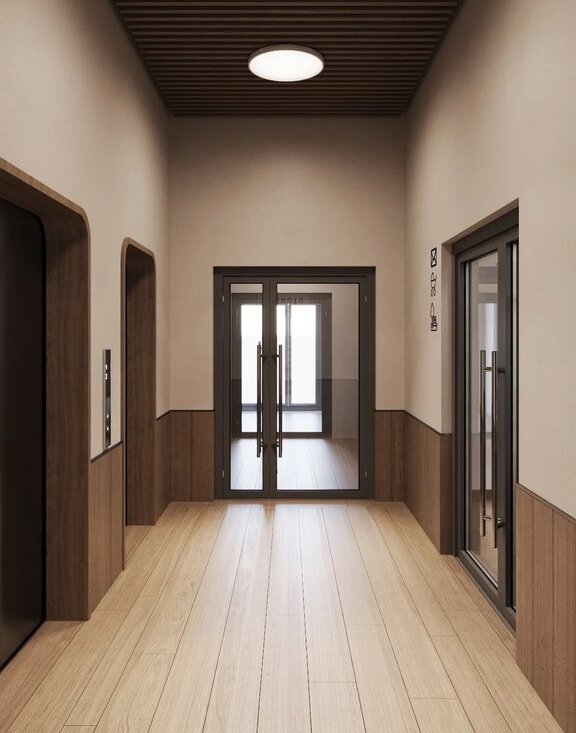 В доме есть подземный паркинг. На первом этаже коммерческие помещения.
