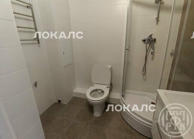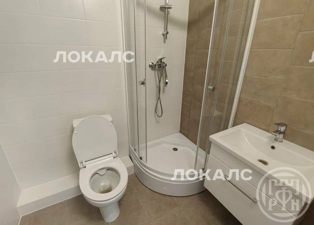 Квартира с полной отделкой в светлых тонах в новом доме. .Санузел с душевой кабиной.