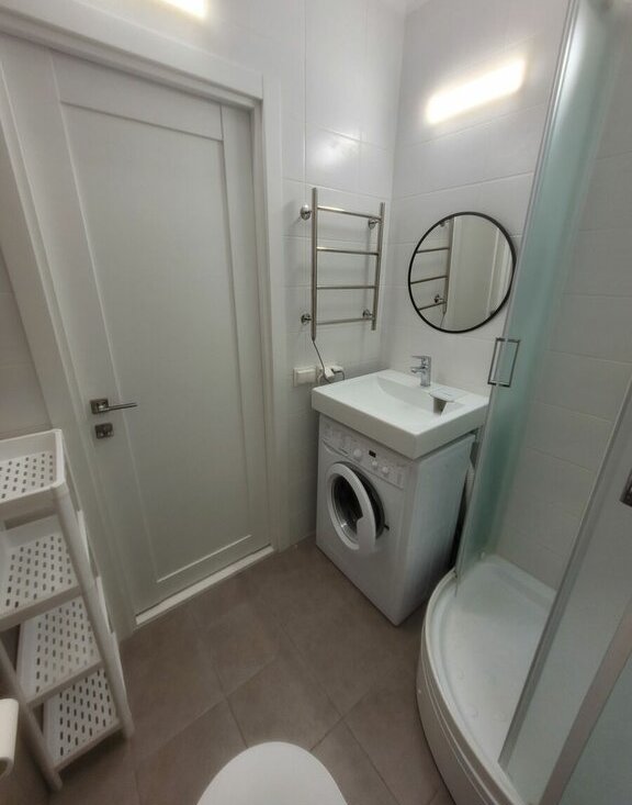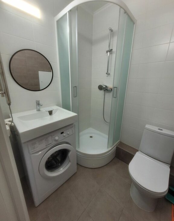 Общая площадь квартиры 20.9 кв. м. В совмещенном санузле ДУШ, стиральная машина.