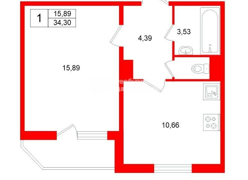 1-комнатная квартира: Санкт-Петербург, Парашютная улица, 31к2 (34.3 м²)