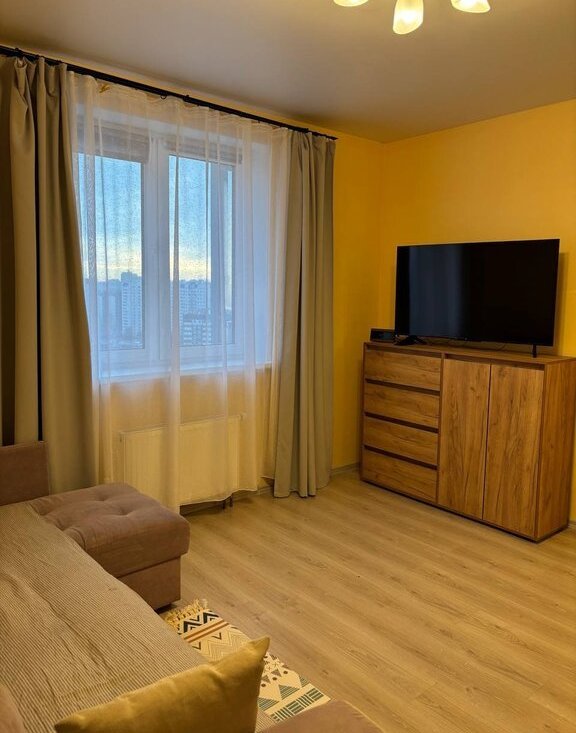 1-комнатная квартира 35 м² с ремонтом, 13/16, монолит 2017, юг, балкон — Парашютная 38к3