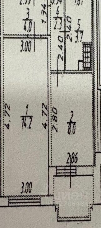 Планировка: Жилая комната — 14.2 кв. м, кухня — 8.0 кв. м (согласно плану).