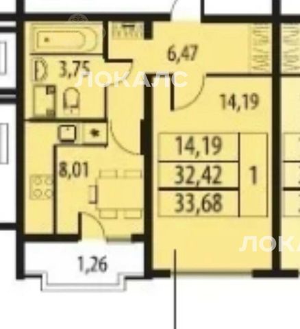 1-комнатная квартира: Санкт-Петербург, Парашютная улица, 65 (34 м²)