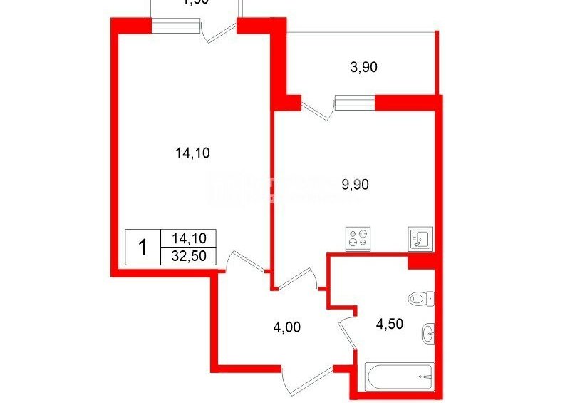 1-комнатная квартира: Санкт-Петербург, Плесецкая улица, 20к1 (32.8 м²)