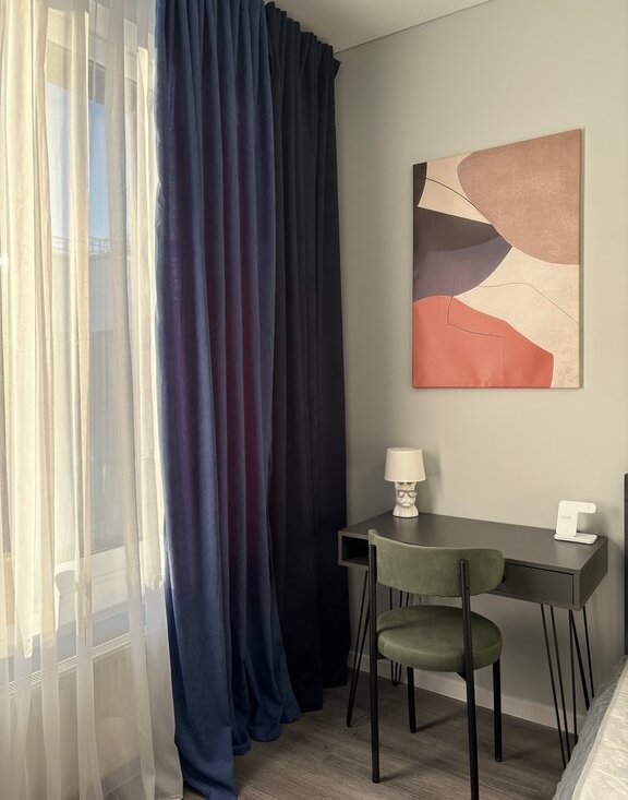 Окна в пол, много света. Все шторы блэкаут.