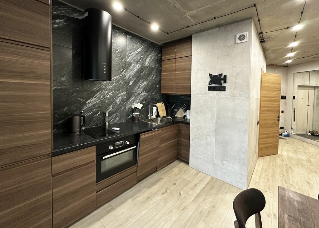 В квартире современный дизайнерский ремонт! Дорогая стильная кухня, со всей необходимой техникой и гарнитуром.