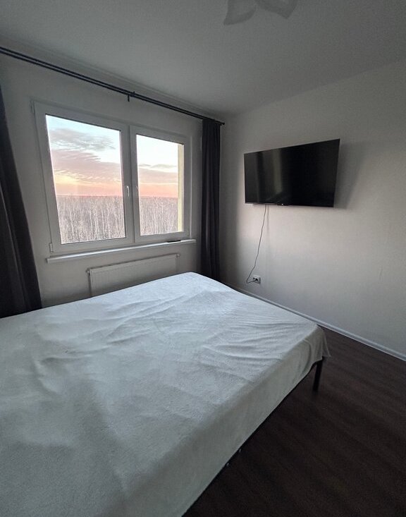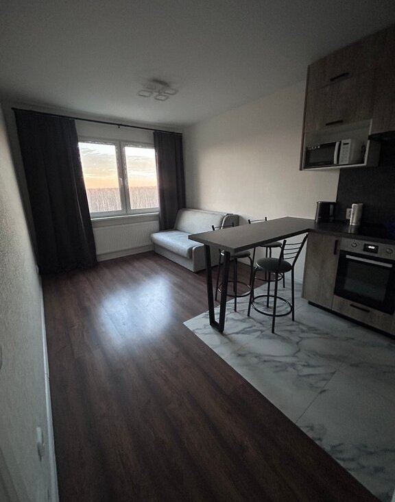 Уютная просторная однокомнатная квартира(евродвушка: кухня - гoстиная и спальня) подойдёт для семейной пары. Вид из окна на леc и тишину, 3 минуты до КАД. Новый обжитый район Санкт-Петербурга.