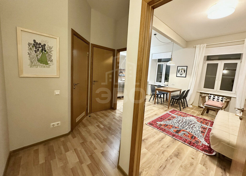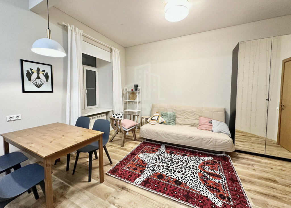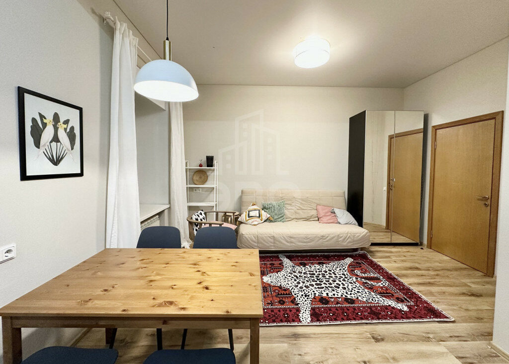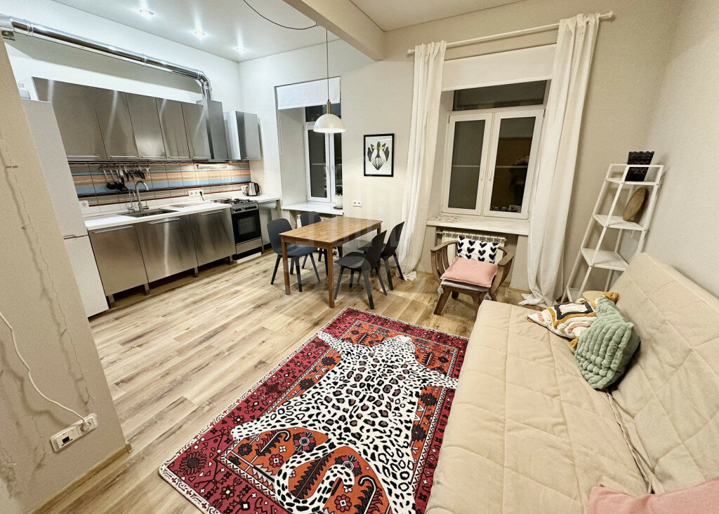 Планировка и оснащение:Просторная кухня-гостиная + изолированная спальняВысокие потолки — 3,2 мКухонная зона оборудована: холодильником, микроволновкой, духовым шкафом, варочной панелью, вытяжкойМного систем хранения (3 шкафа)Установлен фильтр питьевой воды