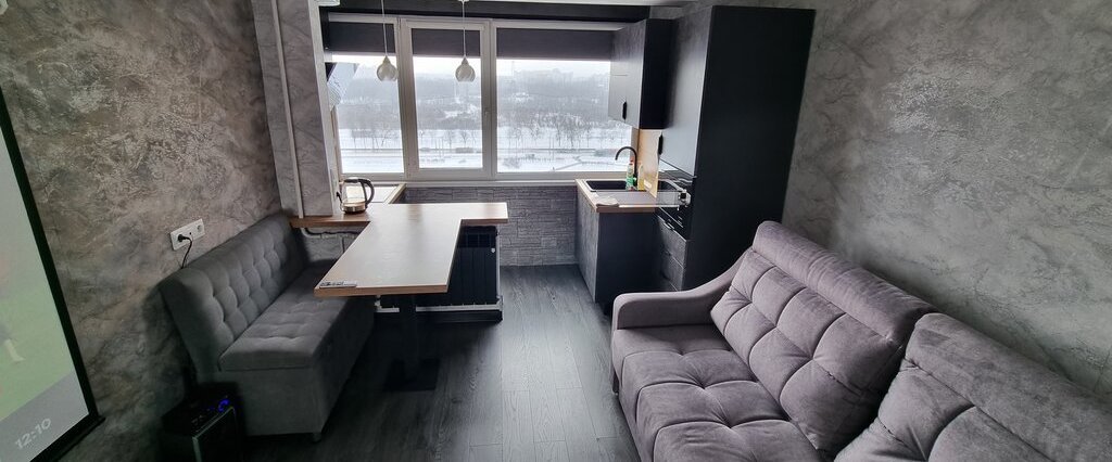 В квартире полностью всё новое. Начиная от пола. Заканчивая потолком и бытовой техникой.