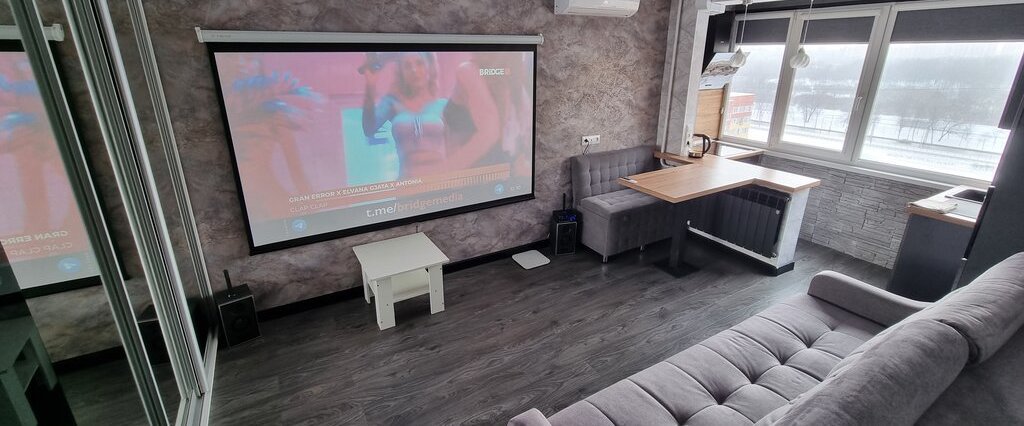 Духовой шкаф, Микроволновая печь. Холодильник, Чайник, Стиральная машина, Пылесос, Напольные весы, Блендер, Фен, Обогреватель, Усилитель, Колонки, Проектор с полотном.