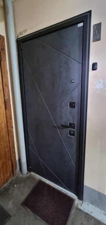 Дорогая входная дверь. Хорошие межкомнатные двери с магнитными замками. Посуда от ножей и вилок с ложками до кастрюль и чашек.