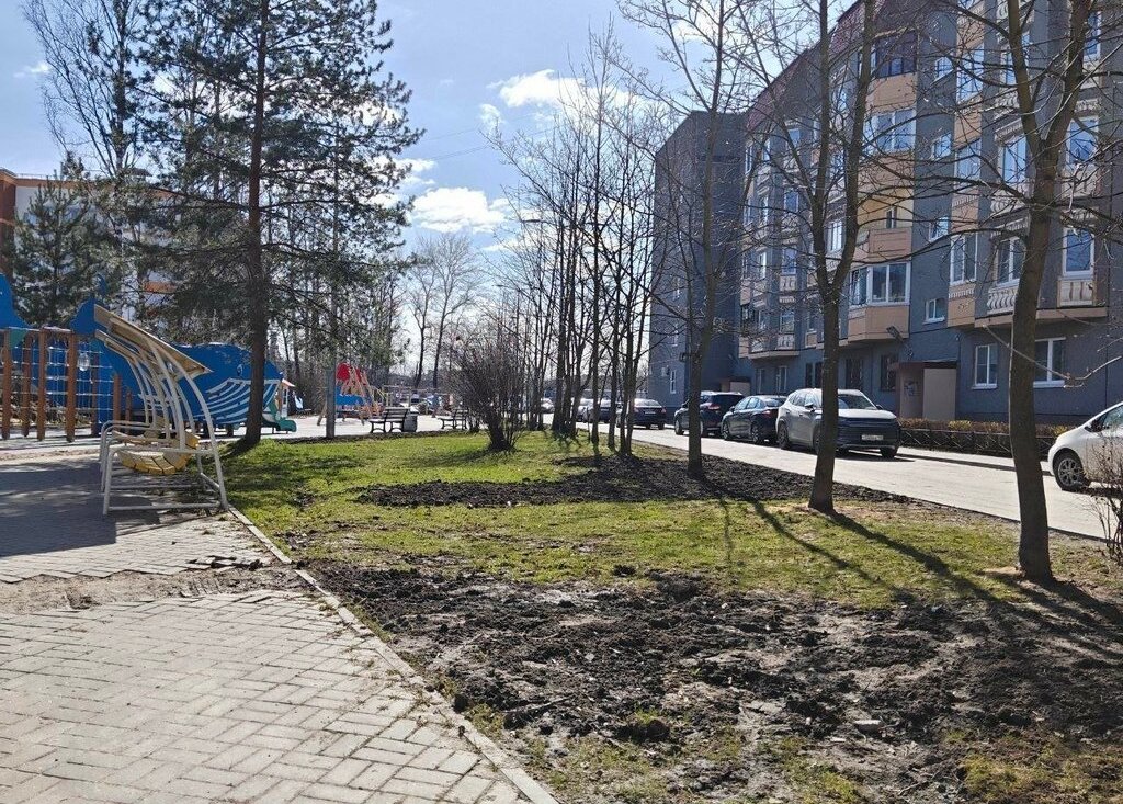 Просторный двор с современной детской площадкой отличное место для прогулок и отдыха на свежем воздухе.