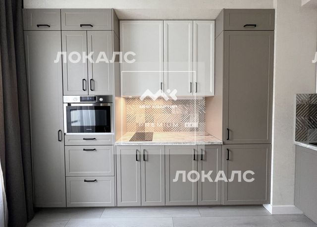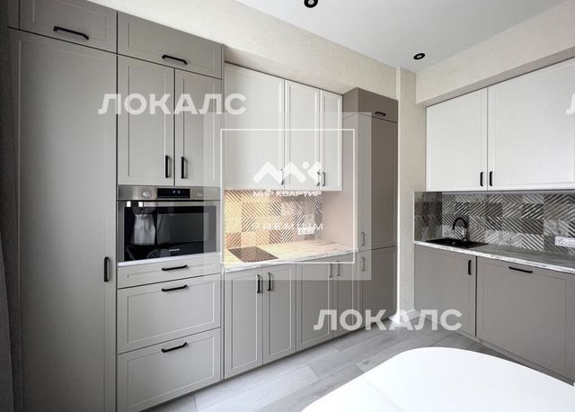 В квартире предусмотрено всё для комфортной жизни: кухня со встроенным холодильником, посудомоечная машина, индукционная плита, духовой шкаф с функцией СВЧ.