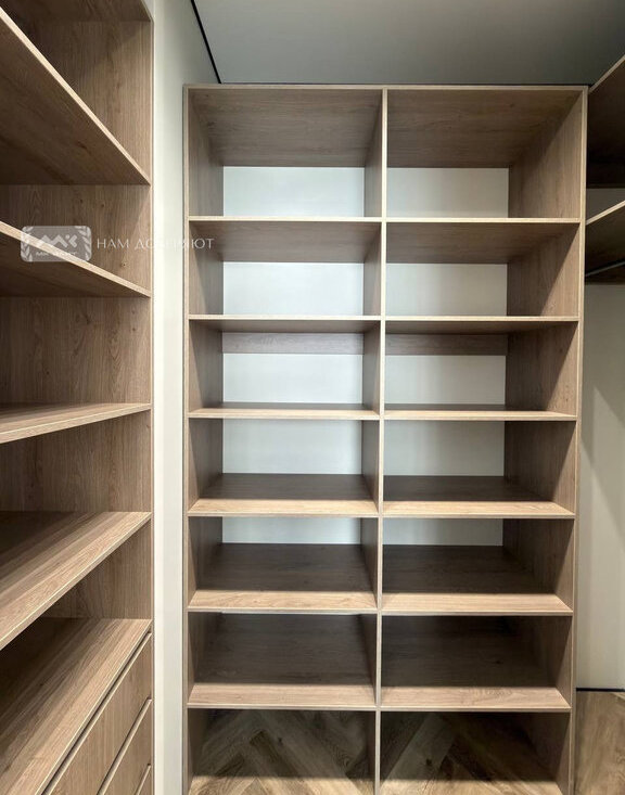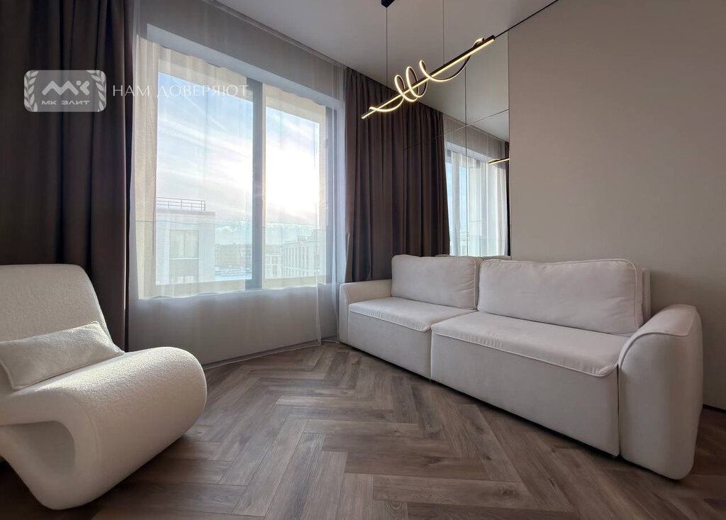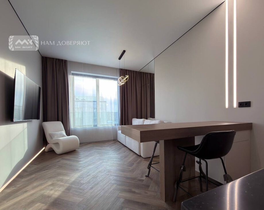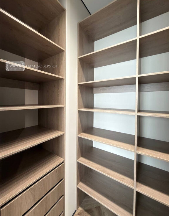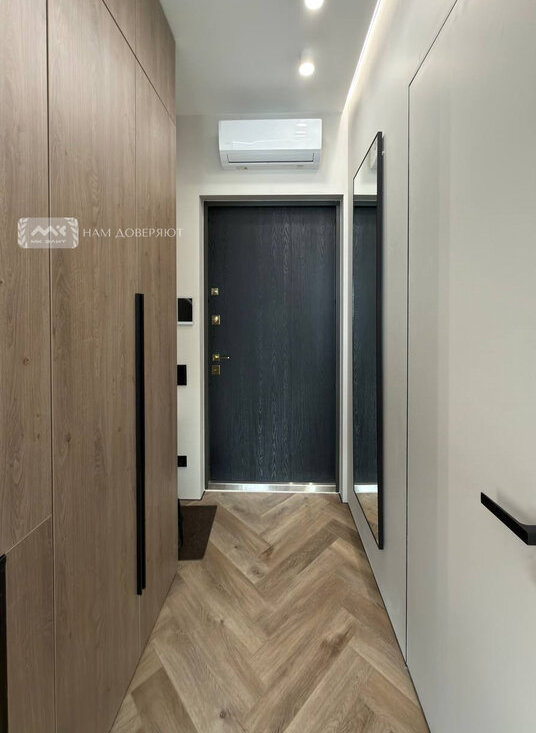 Квартира оснащена всей необходимой мебелью и техникой. Есть отличные места хранения, а также отдельная гардеробная, что обеспечивает комфортное хранение личных вещей.