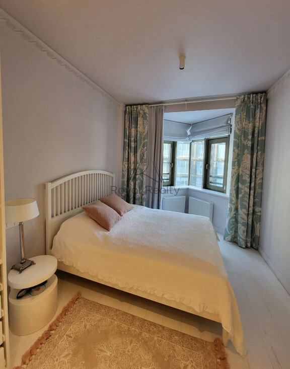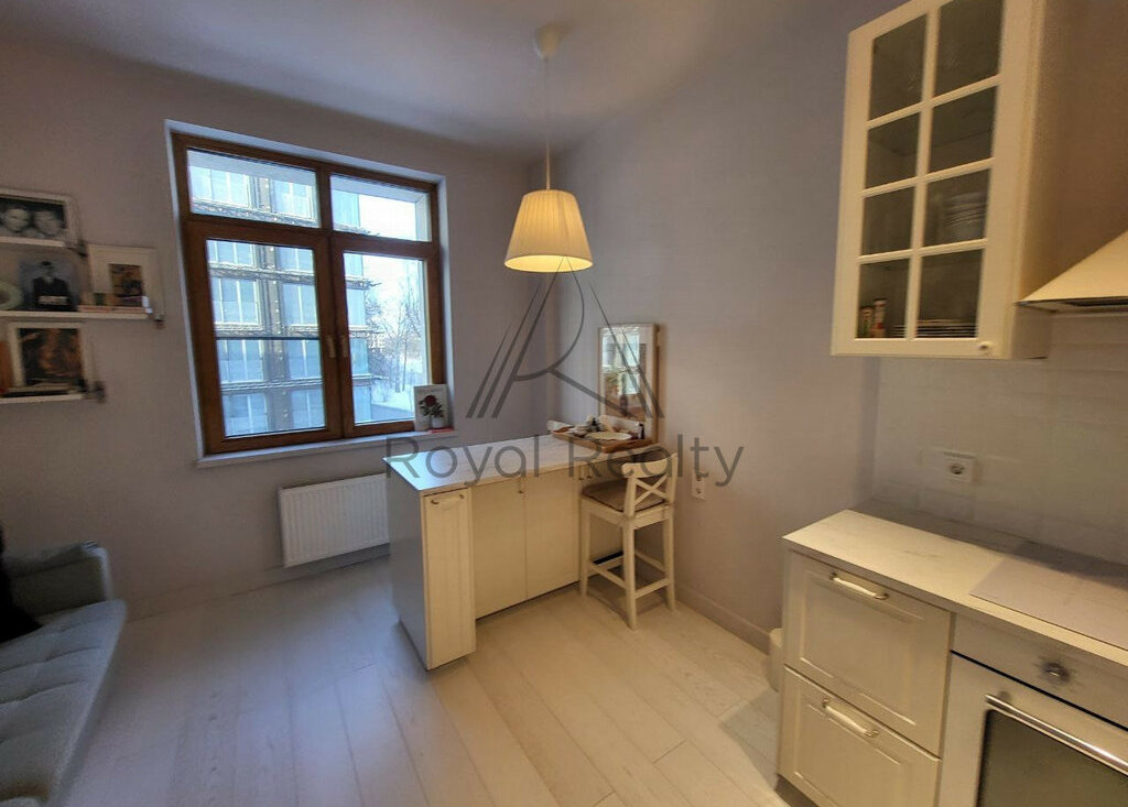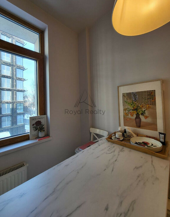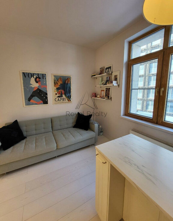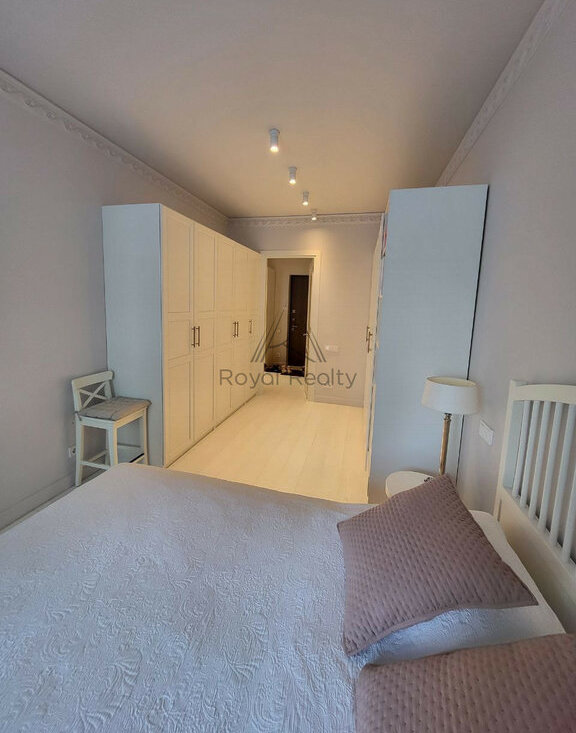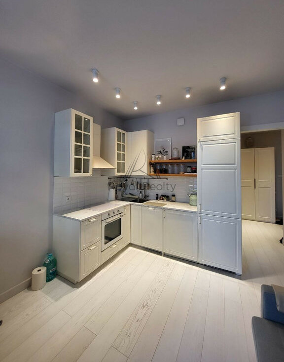 Просторная планировка с отдельной кухней и спальней позволяет с комфортом разместиться и принимать гостей, наслаждаясь элегантной отделкой и высокими потолками.