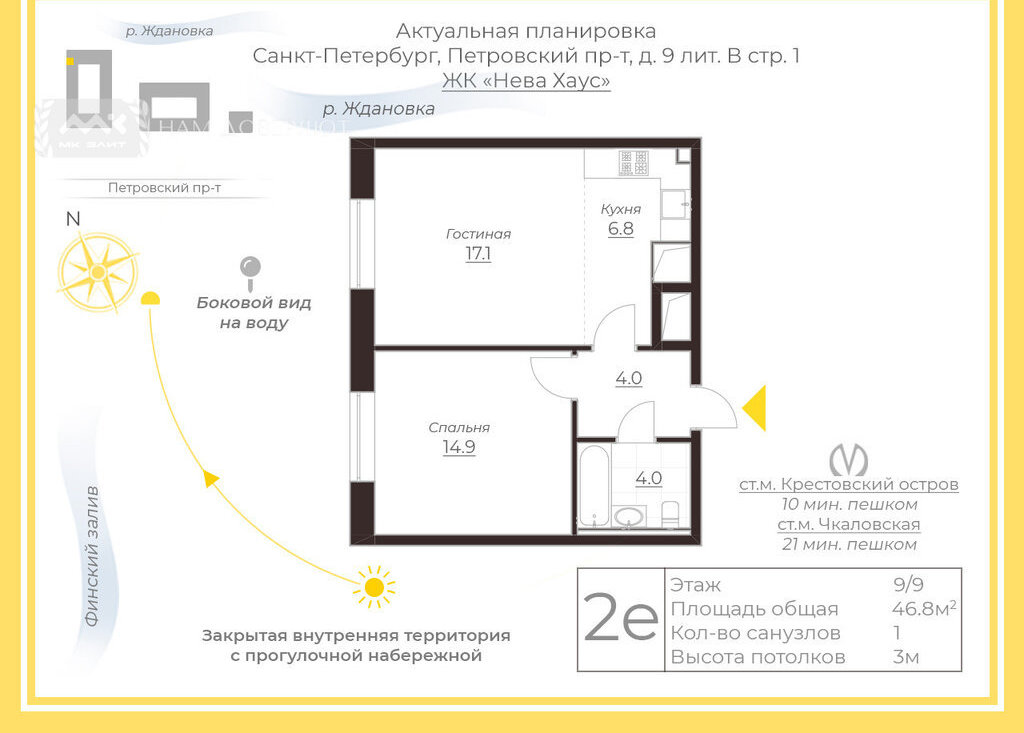 1-комнатная квартира: Санкт-Петербург, Петровский проспект, 9к2 (47 м²)