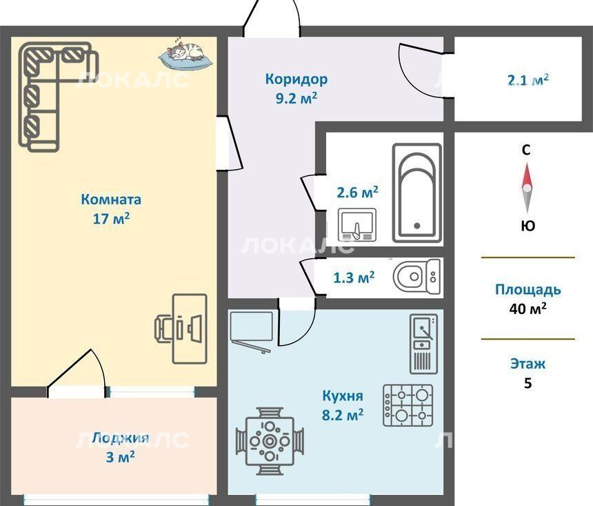 1-комнатная квартира: Санкт-Петербург, Пискарёвский проспект, 159к3 (40 м²)